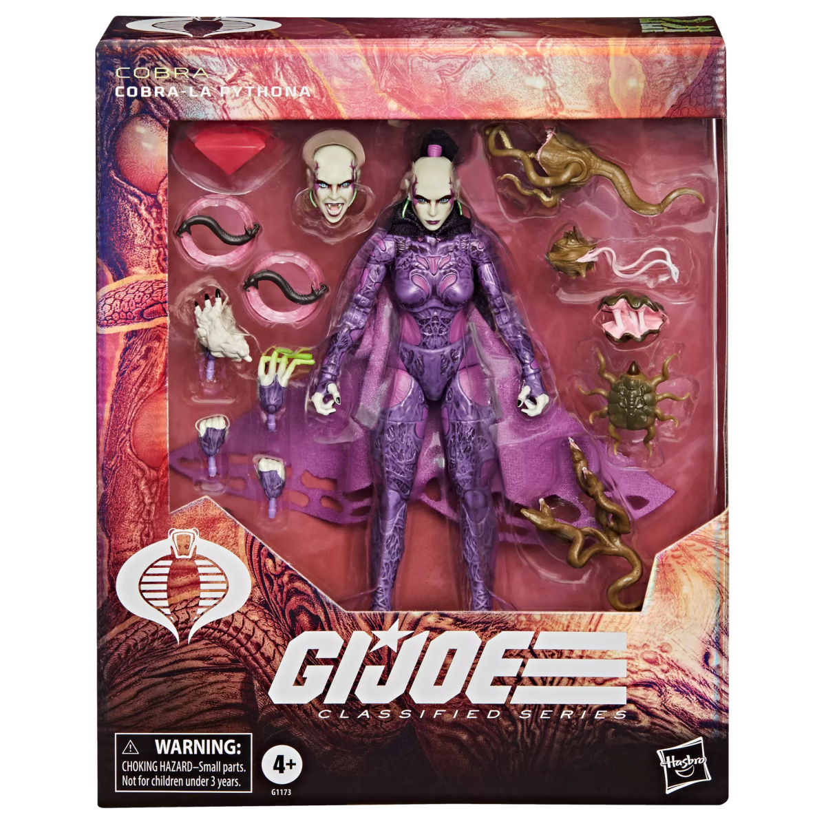 Yo Joe! Step into the world of G.I. Joe: The Movie with the G.I. Joe Classified Series Cobra-La Pythona action figure! This 6-inch (150 mm) premium collectible brings the deadly Cobra-La emissary and assassin into the modern era with high-end sculpting, premium deco, and exceptional articulation for dynamic posing and display.