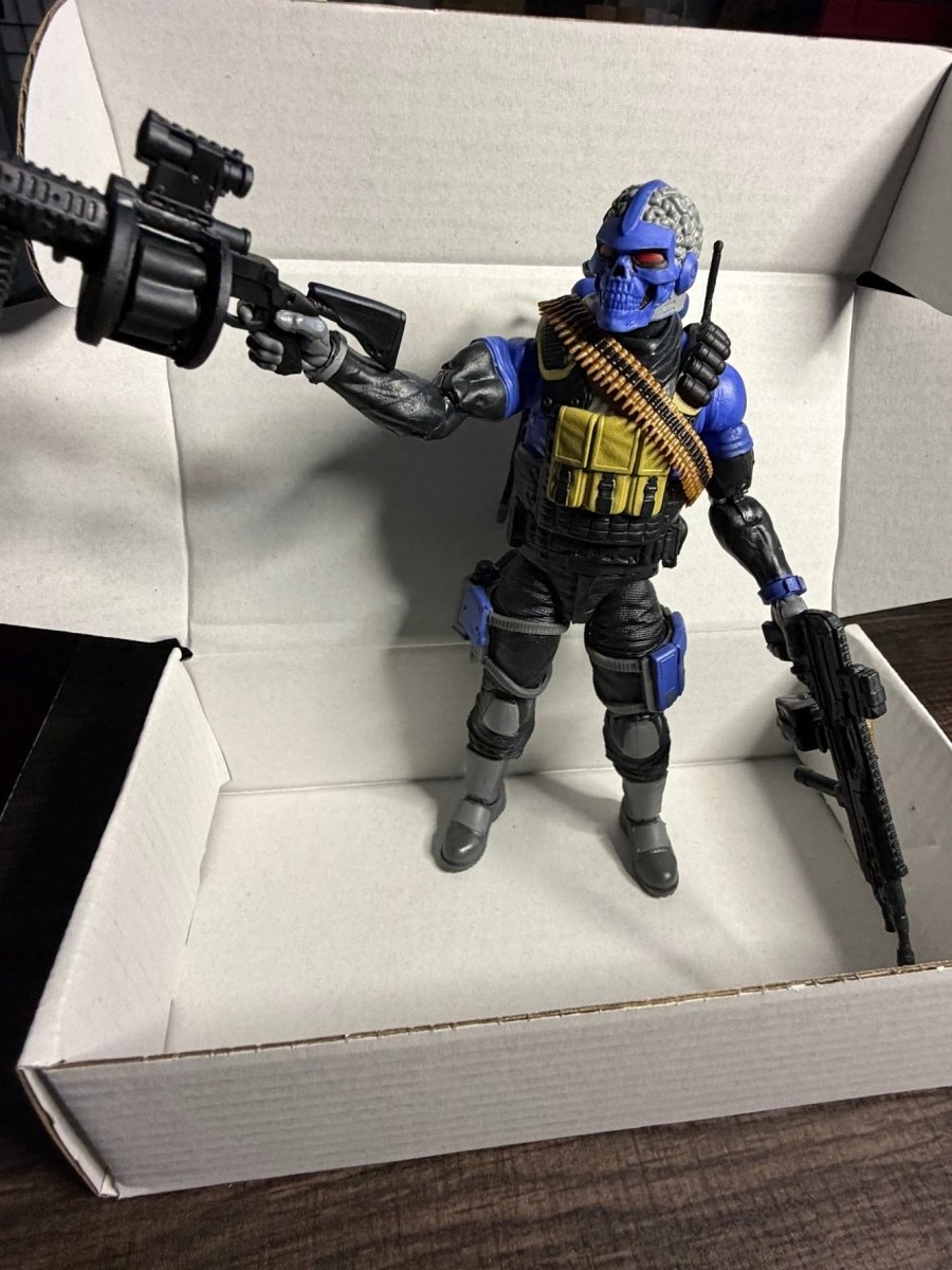 This Range-Viper figure contains 8 character-inspired accessories including a bandolier, bandana, sai, pickaxe, backpack, and 3 weapon accessories; plus a footlocker to stow all their gear! Range-Vipers have an unusually high tolerance for discomfort. They subsist on the vermin they catch, must procure all their own supplies, and build their own shelters. Once dropped into the field, they don’t cost anything to feed, clothe or arm making them ideal cannon fodder.